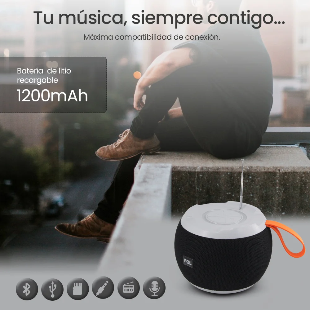 Reproducción directa desde memorias MicroSD y USB, puerto Auxiliar de 3.5mm. que garantiza una conexión estable y máxima compatibilidad con dispositivos. además sintoniza Radio FM.