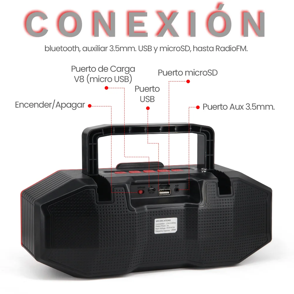 BOCINA BLUETOOTH RECARGABLE CON LÁMPARA Y ANTENA