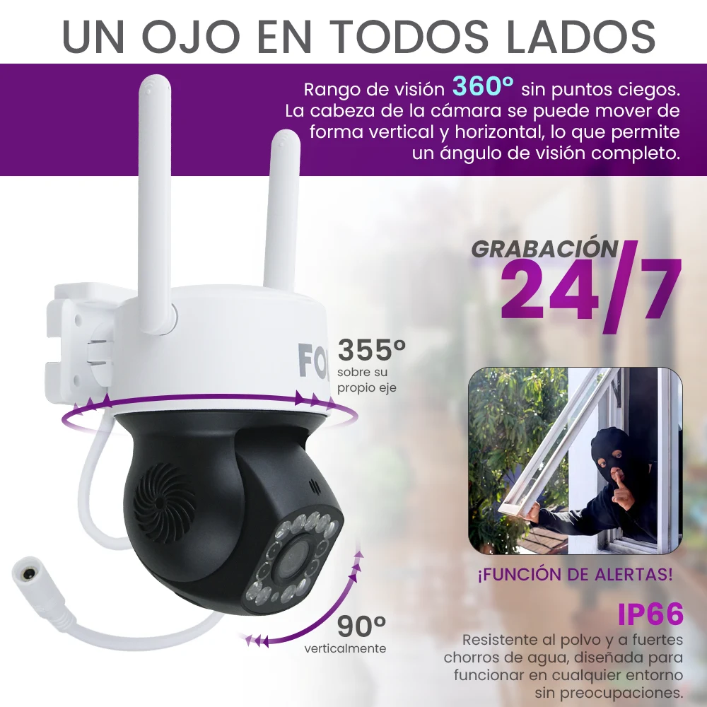 CÁMARA INTELIGENTE WIFI, IDEAL PARA EXTERIORES, PREOTECCIÓN CONTRA POLVO Y AGUA IP66