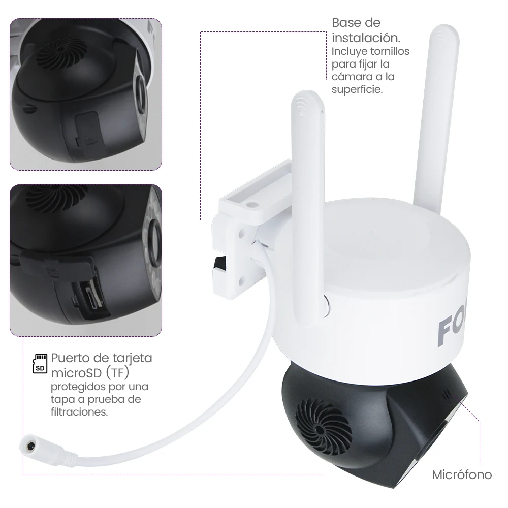 Tipo: Cámara inteligente WiFi para interiores y exteriores