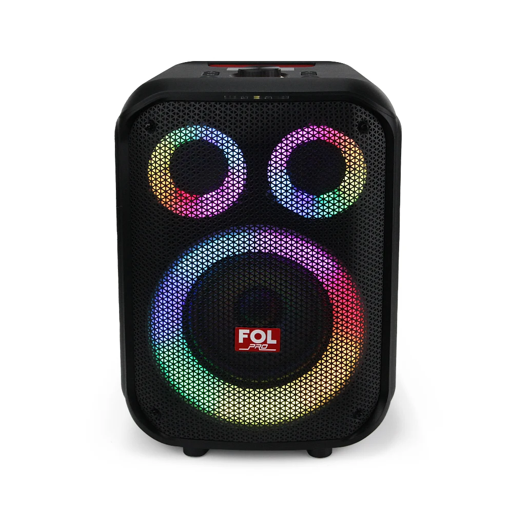Convierte cualquier lugar en una verdadera fiesta con esta bocina de 90W que combina potencia, estilo y versatilidad. Su woofer principal de 6.5″ acompañado de 2 bocinas de 2.25″ llena el ambiente con un sonido claro y profundo, mientras sus 3 aros frontales con luces RGB y su flash estroboscópico integrado en la parte frontal crean un espectáculo visual que enciende la pista de baile al ritmo de tu música.