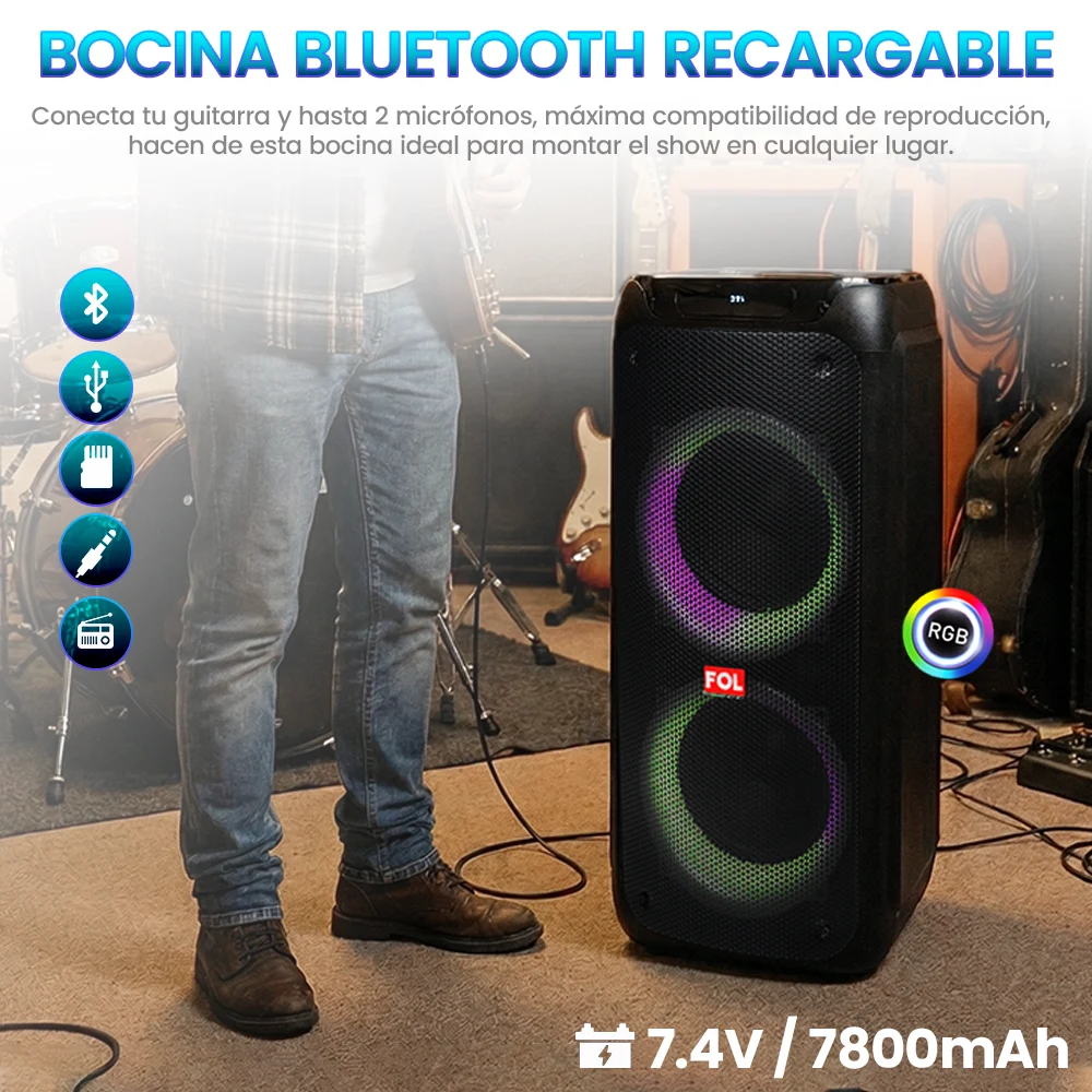 BOCINA AMPLIFICADA TWS RECARGABLE CON LUZ RGB Y MICRÓFONO INALÁMBRICO