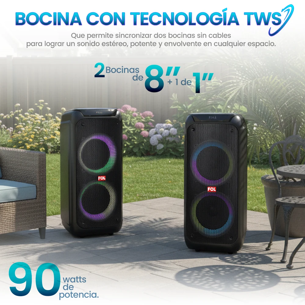 BOCINA AMPLIFICADA TWS RECARGABLE CON LUZ RGB Y MICRÓFONO INALÁMBRICO