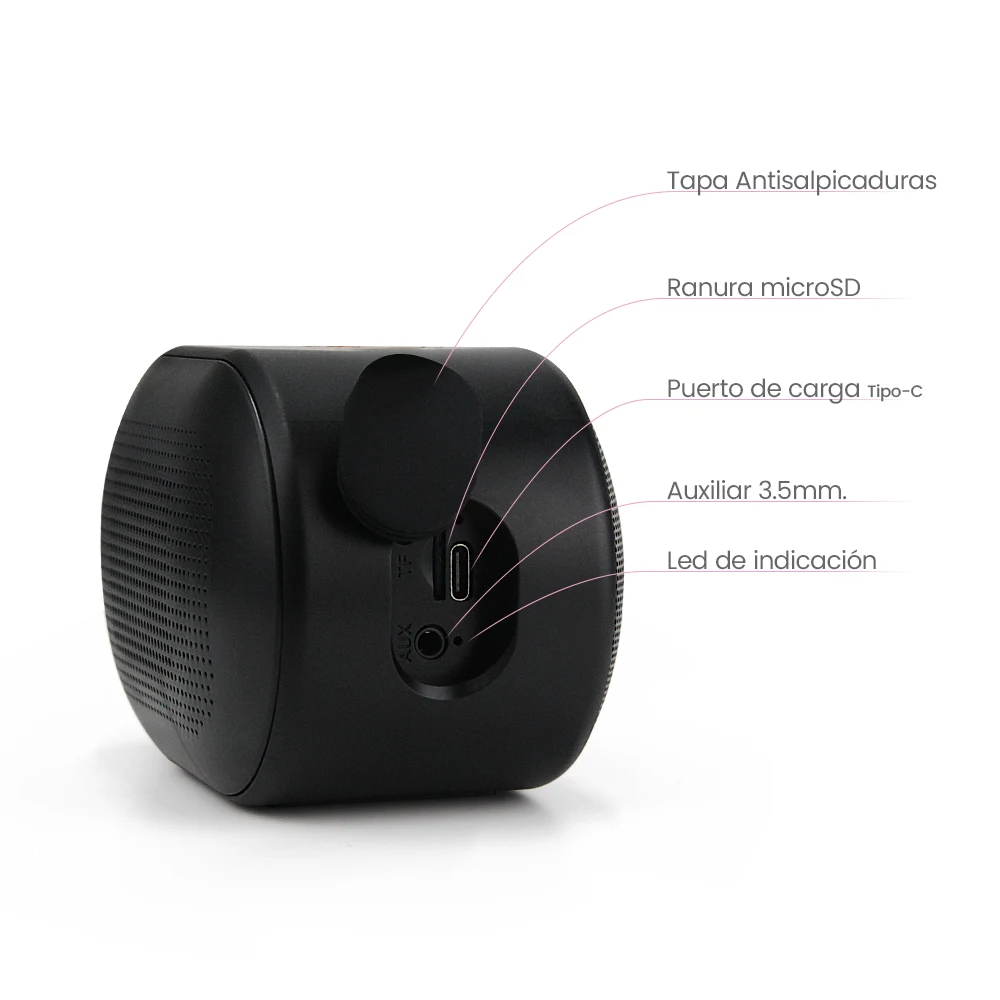Diseñada para acompañarte en todo momento, esta mini bocina TWS ofrece un equilibrio ideal entre potencia, diseño y funcionalidad.