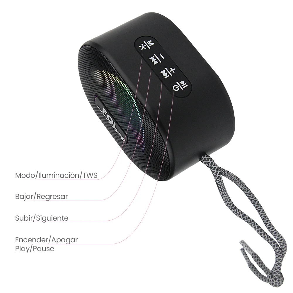 FS-SP06 MINI BOCINA PRO TWS RECARGABLE CON LUZ RGB Y CORREA INTEGRADA REFLECTANTE